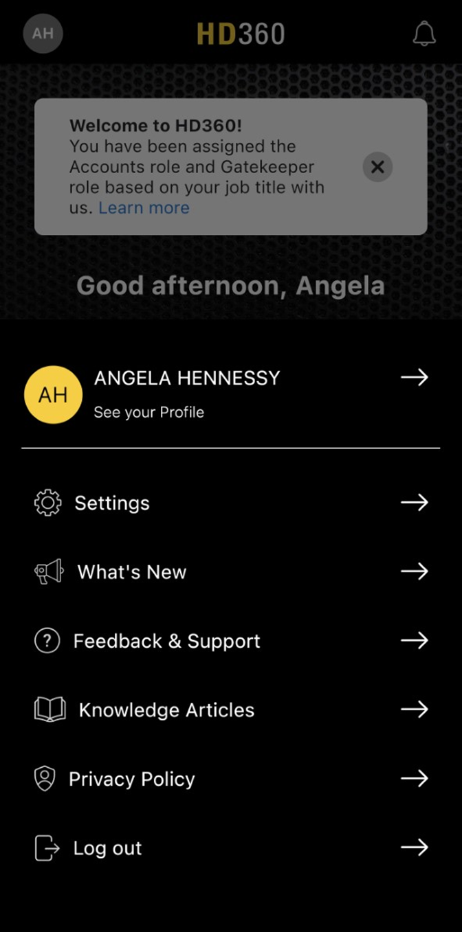 4. User will be logged into HD360 application with the devices security settings enabled.