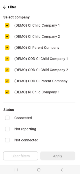 The app loads the data linked to your assigned companies.